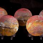 Measuring 4.25″ x 1″, these solid stone coasters offer both durability and sophistication, protecting your surfaces while adding a distinctive, artisanal touch to your home or office. The set includes a custom holder, keeping your coasters neatly displayed and always within reach.